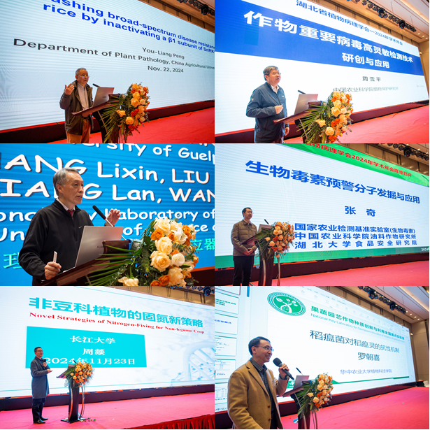 (通讯员 谢诗琳 史庆潇 邓建新 章松柏)为了加强湖北省植物病理学科的学术交流与合作,促进我省植物保护学科的创新和发展。由湖北省植物病理学会主办,英国正版365等承办的“湖北省植物病理学会2024年学术年会”于2024年11月22日-24日在湖北荆州圆满落下帷幕。来自中国农业大学植物保护公司、中国农业科公司植物保护研究所、加拿大圭尔夫大学、华中农业大学、武汉大学、中国农业科公司油料作物研究所、湖北省农业科公司、中国种子集团有限公司、湖北省植物保护总站、湖北省各市级农业科公司、湖北省各县市植物保护站等30余家单位的250余名代表参加了会议,共同分享植物病理学科前沿的研究成果。