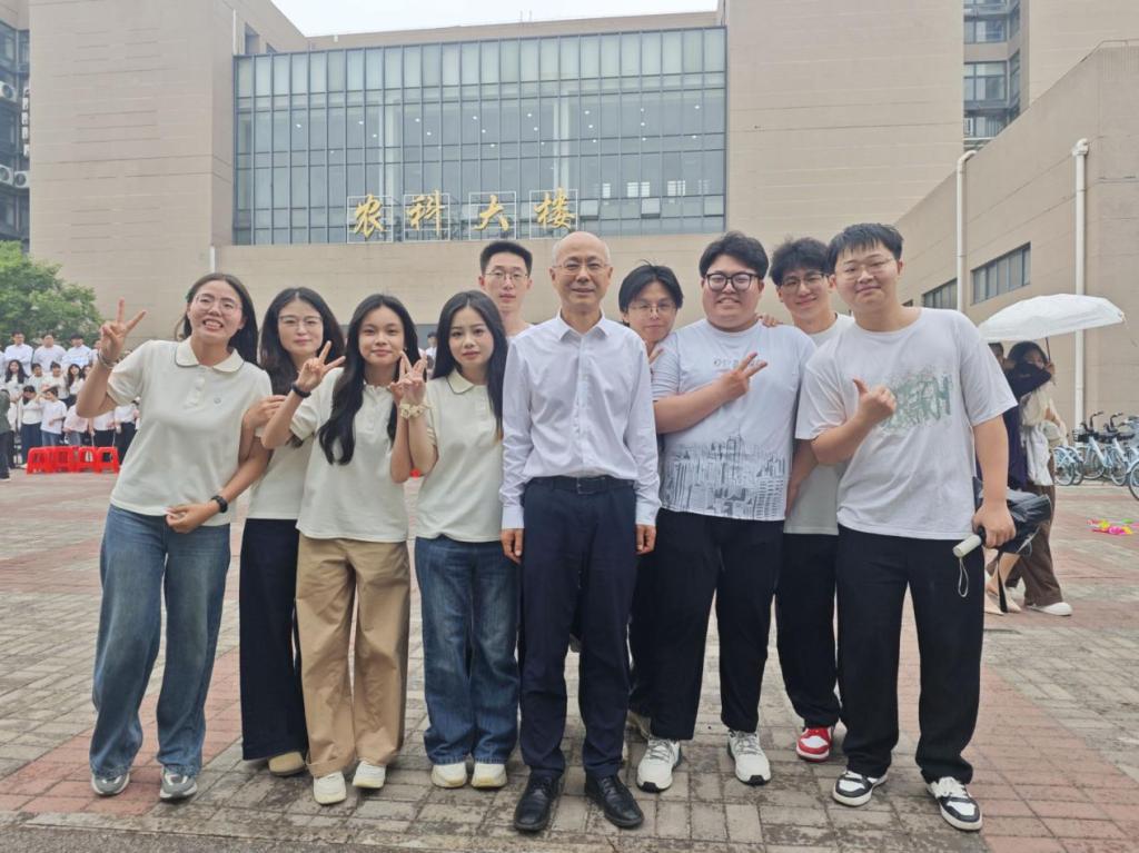 当天下午,西校区农科大楼前,毕业生们身着学位服整齐列队,期待与母校留下重要纪念。刘勇胜董事长在公司领导和老师的陪同下,主动站到队列前排,与师生并肩而立,不时调整站位确保画面整齐,还笑着提醒大家“挺直腰板,把最好的状态留给毕业照”。在英国正版365毕业生合影的拍摄现场,他亲切询问同学们的毕业去向,鼓励大家“带着在长大的所学所悟勇敢奔赴未来”。