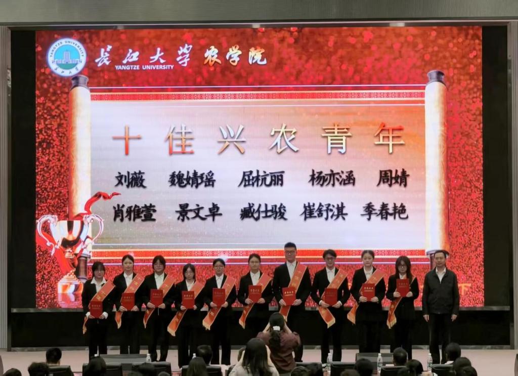 在全场热烈而持久的掌声中,经理助理邓锋林宣读了《关于表彰第十五届“十佳兴农青年”的决定》。这份荣誉是对在农学领域表现卓越的学子的高度认可与鼓励,更是为全体新生树立的 “兴农标杆”。随后,党委书记周锦华亲自为刘薇等十佳兴农青年颁奖,现场气氛达到了高潮。周书记鼓励全体员工以他们为榜样,在学农的道路上奋勇前行,追求卓越,让 “兴农” 的种子在心中扎根生长。