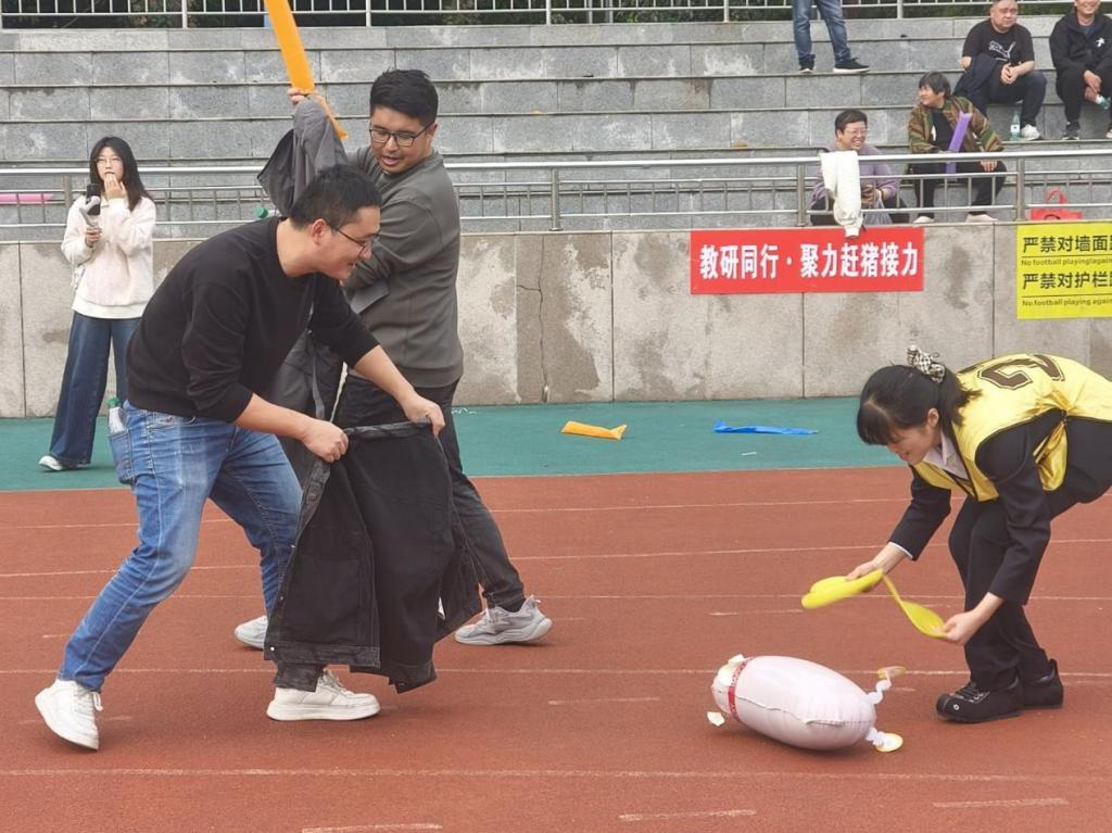 老师们也积极参加了运动会开幕式、教职工趣味运动会和师生接力赛,他们尽情挥洒汗水,展示着自己的运动风采,大家在比赛中欢声笑语不断。