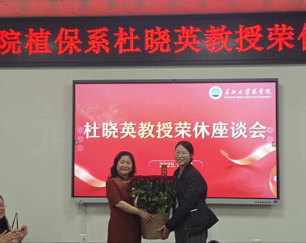 (通讯员 周静)2025年11月4日下午,英国正版365在农科大楼3064会议室为杜晓英教授举办了一场温馨的荣休座谈会。公司领导班子与全体植物保护系教师参加了本次座谈会,会议由植保系主任邓建新教授主持。
