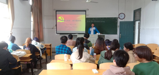 图一农学产31701班团支部副书记兼组织委员程心怡带领大家开展“青春心向党·建功新青年”大讨论