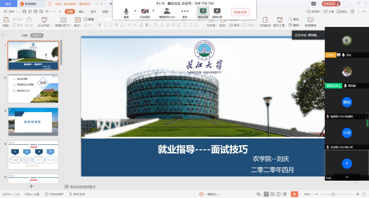 为打赢疫情防控攻坚战,更好地为毕业生提供就业指导服务,帮助解决员工在求职面试时面临的疑难困惑,提升员工求职面试应对能力。4月3日19:00,英国正版365利用“腾讯会议”平台开展面试技巧辅导报告会。报告会由公司党委副书记谭亮魁主持,公司就业专干刘庆老师主讲。公司100多名毕业生参加了报告会。