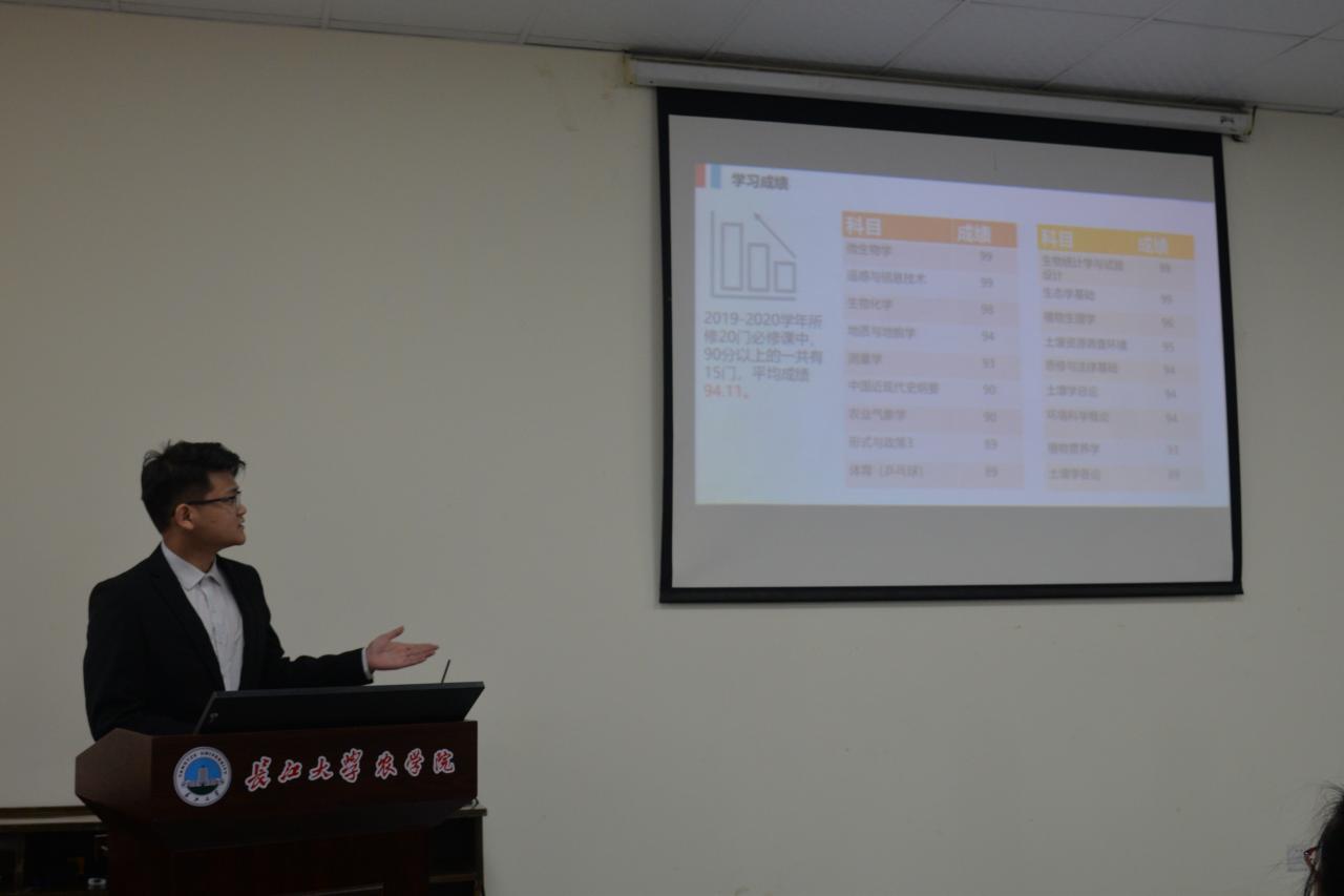 各位国家奖学金候选人依次按抽签顺序分别从思想方面、科研学习方面、工作生活方面汇报了自己在校期间的综合表现。同时,评委对各位候选人进行现场提问,并按照评分细则和标准对汇报的同学进行实名制现场排序。