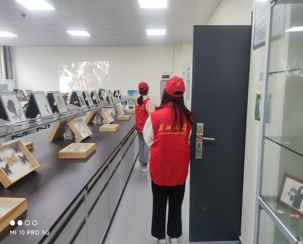 在活动中,地质展览室吸引了不少同学前来参观,前来参观的同学对展出的各种地质标本充满了浓厚的兴趣。不少参观的同学更是驻足在蝴蝶标本和蝴蝶画前,对它们充满了喜爱和赞赏。紧接着,负责讲解的志愿者为同学们普及了蝴蝶的有关知识,并对农学相关专业进行了系统的介绍,帮助同学们更好的了解了农学的就业方向和发展前景。