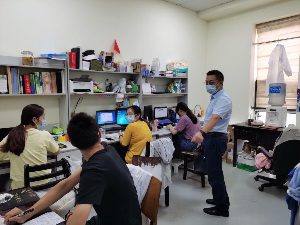 公司党委书记冯发明、副经理方正武一行检查了农学系实验室以及员工学习区,近期员工前往太湖基地做田间实验较多,两位领导叮嘱员工做好疫情防控措施,注意外出交通安全,备好防暑降温物品。