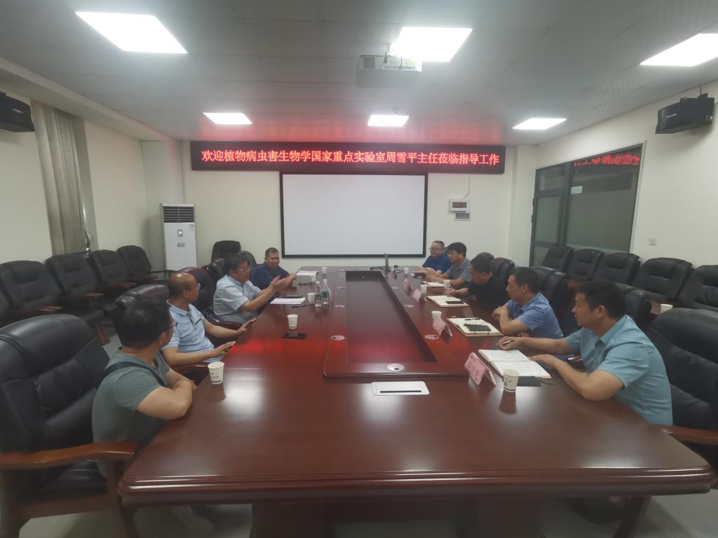 8月14日,中国农业科公司植物保护研究所原所长、国家级人才计划入选者、植物病虫害生物学国家重点实验室主任周雪平研究员来校讲学和指导工作。