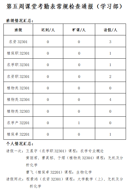 为端正学风、严肃校纪校规,现对全体员工课堂考勤常规检查给予通报。