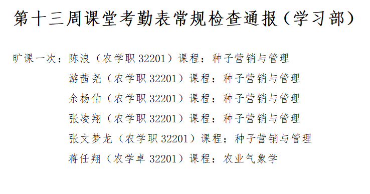 为端正学风、严肃校纪校规,现对全体员工课堂考勤常规检查给予通报。