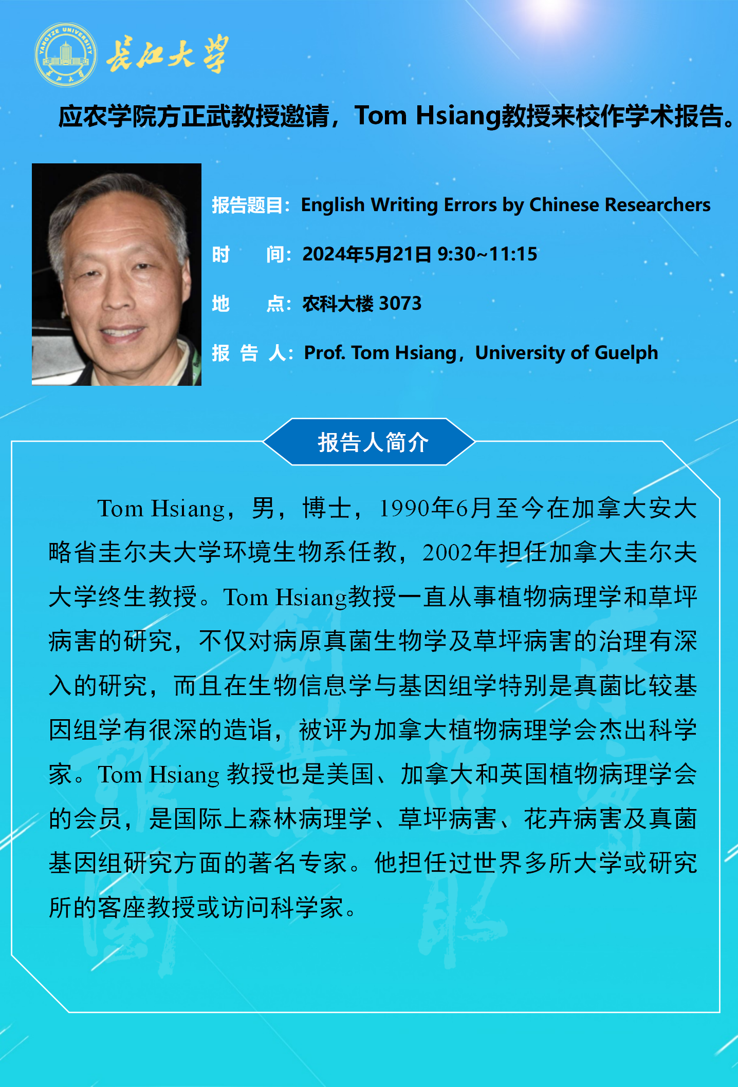 2024年学术报告(八):作物光温敏不育机制及新型不育系创制
