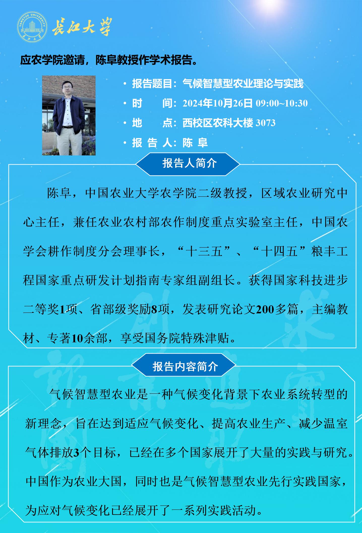 2024年学术报告(二十二):气候智慧型农业理论与实践