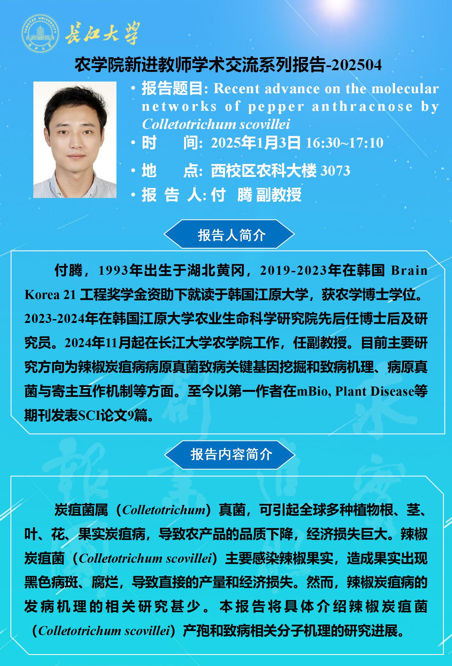 2025年学术报告(四):Recent advance on the molecular networks of pepper anthracnose by Colletotrichum scovillei