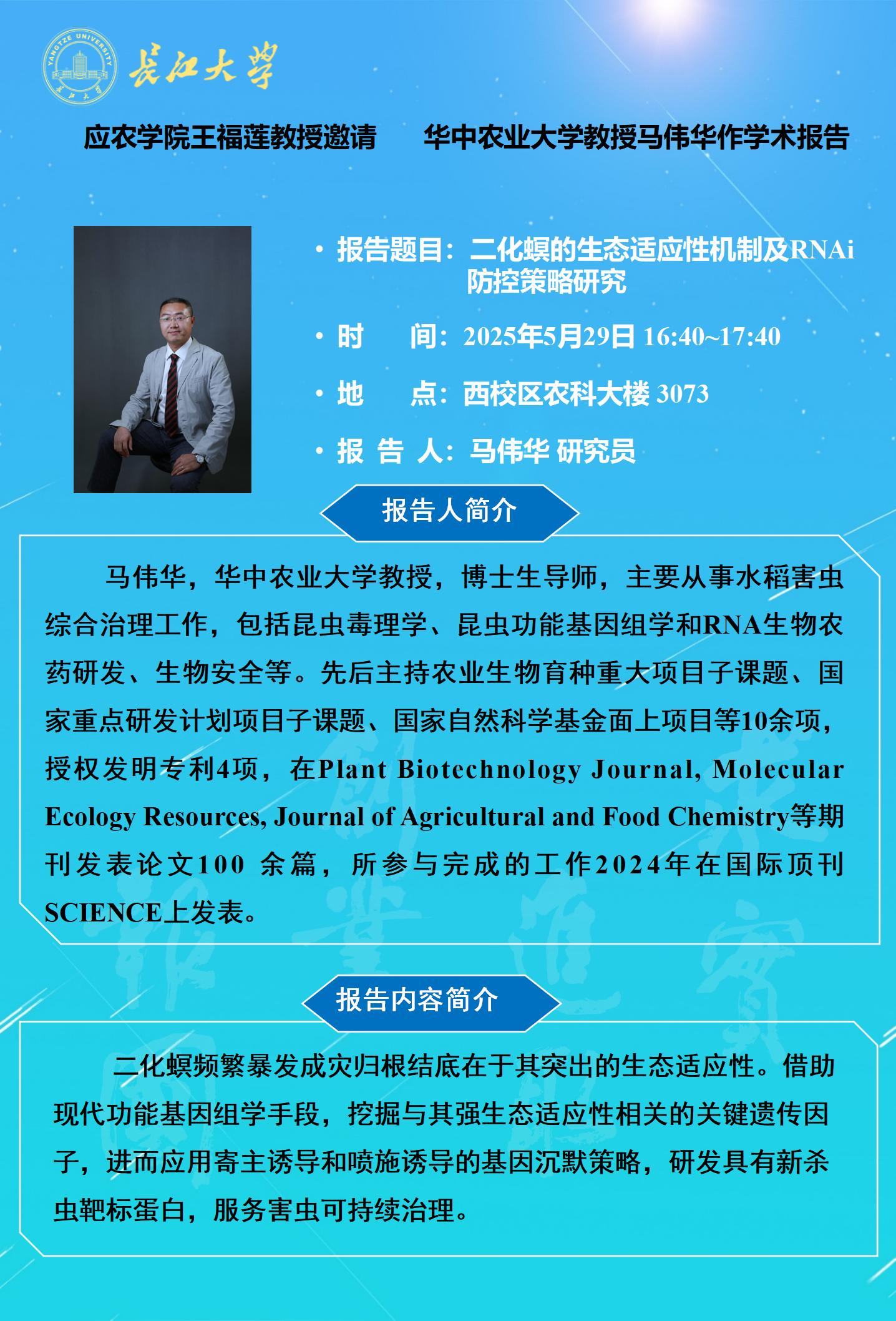 2025年学术报告(十三):二化螟的生态适应性机制及RNAi防控策略研究