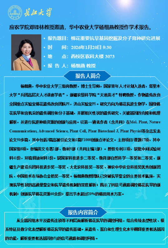 2026年学术报告(一):棉花重要抗旱基因挖掘及分子育种研究进展