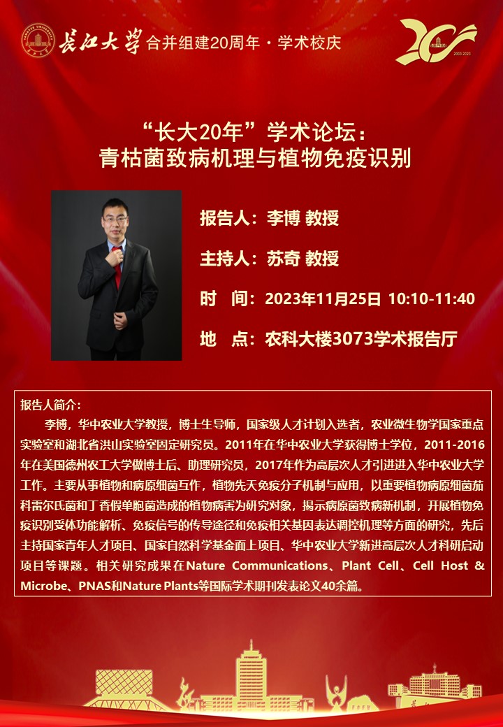 “长大20年”学术论坛暨英国正版365学术讲坛:青枯菌致病机理与植物免疫识别