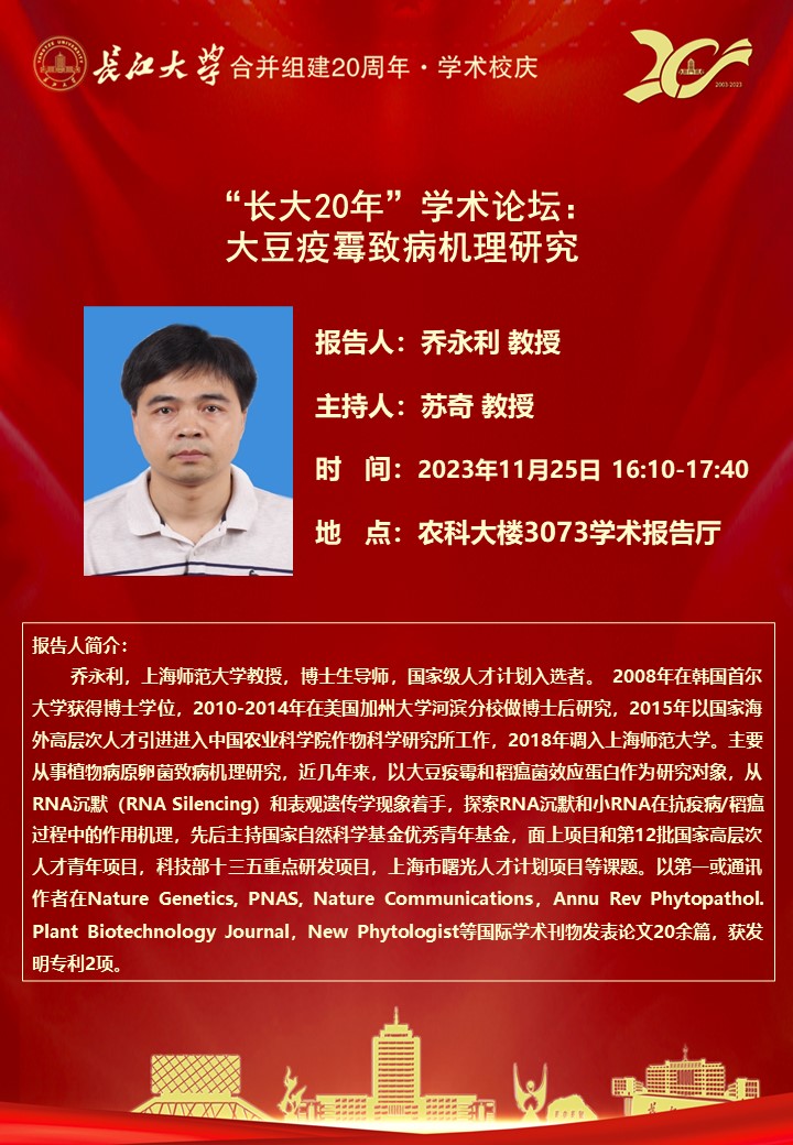“长大20年”学术论坛暨英国正版365学术讲坛:大豆疫霉致病机理研究
