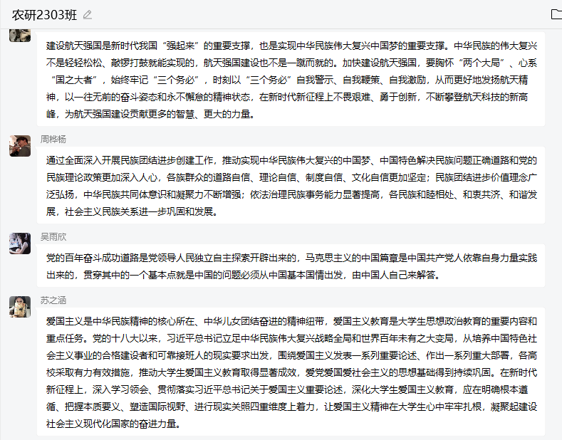 各班级主要围绕学习宣传贯彻全国两会精神、教育部关于高校教师师德失范行为处理的指导意见、《关于二十届中央第二轮巡视情况的综合报告》、《网络安全法》等内容进行学习,并通过线上、线下的方式展开研讨,取得良好的效果。