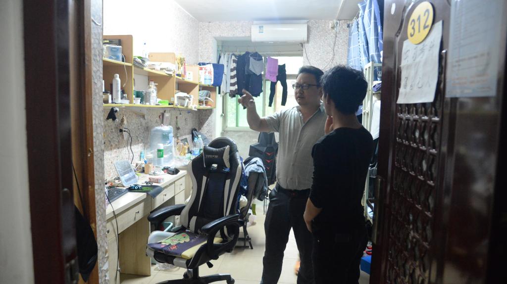 (见习记者 曹淏郁/文 邬道瑾/摄)为了改善员工在宿舍的卫生情况并提高自主学习意识,强化员工宿舍管理,5月14日下午7:00,公司党委副书记尹小华带领全体辅导员老师对风华园员工宿舍进行了突击检查。