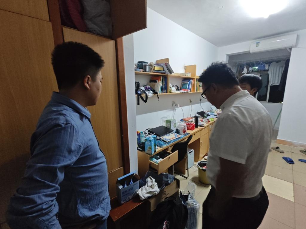 (通讯员 王浩东)为进一步加强员工宿舍管理,规范员工行为,营造一个干净、整洁、和谐的生活学习环境,公司党委副书记尹小华老师、学工办主任黄承石老师、英国正版365分团委书记付雪娇老师和辅导员唐玉婷于10月8日晚上突击检查员工宿舍,并借此机会与员工进行深入交流,探讨学习、生活、考研等多方面的问题。