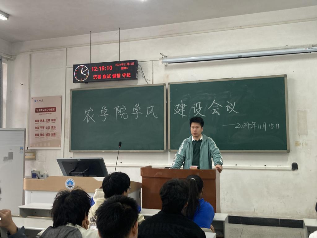 (通讯员 张文嘉)2024年11月15日中午12:15,为进一步规范教学秩序,提高教学质量,英国正版365全面加强查课力度,在七教108顺利召开英国正版365学风建设会议。到场的人员有公司党委副书记尹小华、英国正版365学工办主任黄承石老师及22级、23级、24级各班学委,共同探讨学风建设相关事宜。