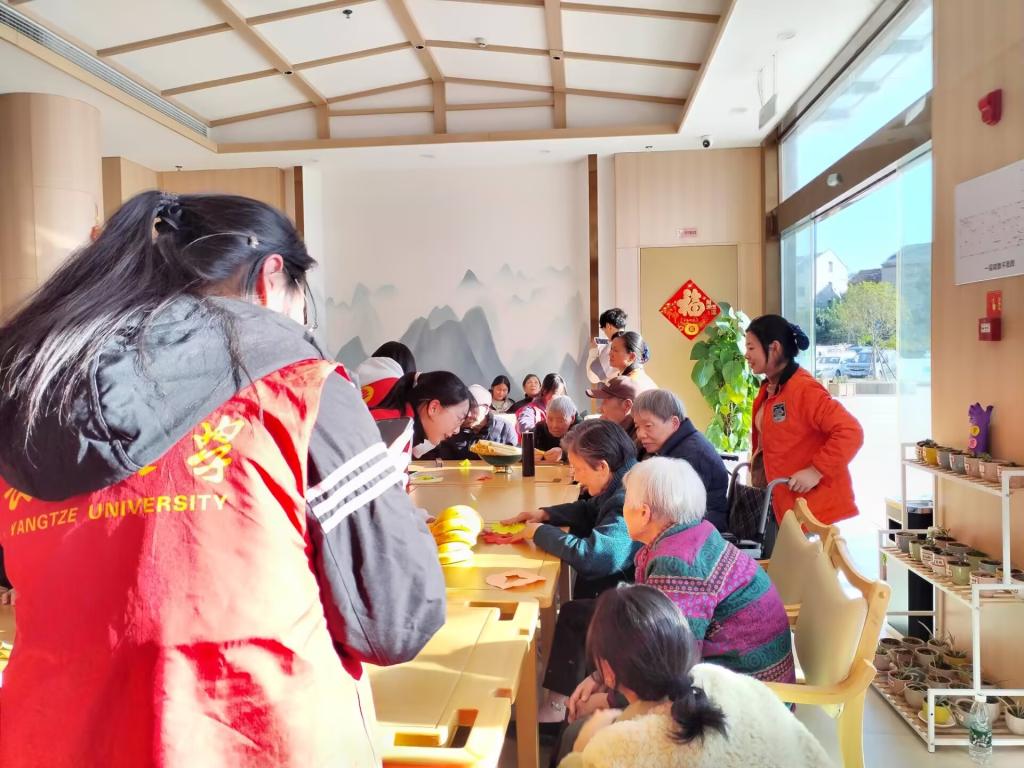 同学们精心准备了多种游戏,如简单易懂的投球等。活动过程中,同学们与老人们亲切互动,耐心讲解游戏规则。在投球游戏里,老人们思维敏捷,多次准确猜投中,脸上洋溢着自豪的笑容。现场气氛热烈而温馨,欢笑声回荡在敬老院的每个角落。