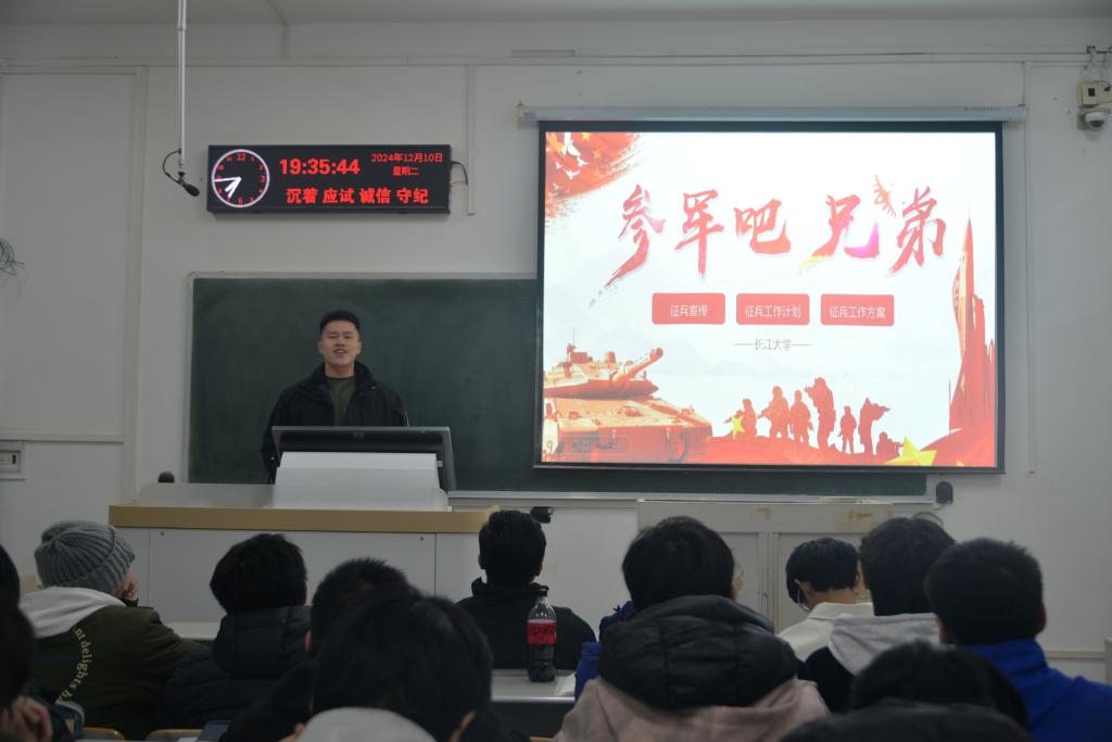 (通讯员 吴泓萱 吴静宜)征兵宣传进校园,点燃学子参军梦。12月10日晚7点,英国正版365组织员工开展2025年春季征兵宣讲会。公司征兵宣讲员高依恒、郑一成主讲,英国正版365征兵专干林香亮主持活动。