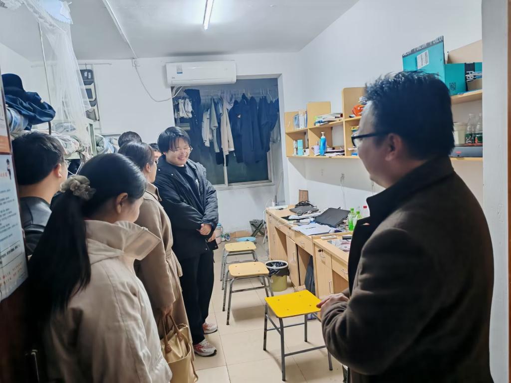 (通讯员 孟瑶)满怀着对员工的殷切关心,公司党委副书记尹小华老师、辅导员付雪娇老师、辅导员唐玉婷老师、兼职辅导员郝梨老师于2024年12月19日晚上九点走访了员工们的寝室,旨在全面了解同学们的学习生活状况,为同学们提供更贴心细致的关怀与引导,打造更加安全,舒适,有序的居住空间。