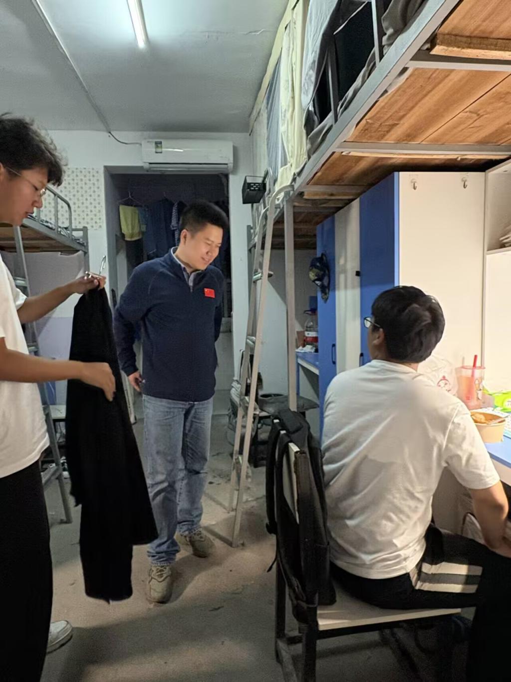 检查过程中,老师们一行深入各年级员工寝室,与同学们进行了亲切交流,细致询问了大家的学习、生活情况,并认真查看了宿舍的卫生状况、物品摆放、用电安全以及消防设施配备等细节。重点检查了是否存在使用违规电器、私拉乱接电线、堆放易燃杂物、堵塞消防通道等安全隐患,并对阳台、卫生间等卫生死角进行了仔细察看。
