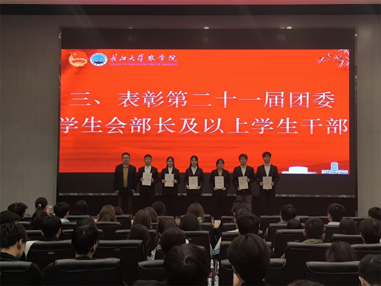 大会伊始,全体成员起立奏唱团歌,大会在激昂的旋律中拉开序幕。学工办主任黄承石宣读任命文件,明确了新一届团委员工会的组织架构与人员任命。随后,大会对第二十一届团委员工会主席团及部长(含宿委会)进行表彰,尹小华等老师为其颁发聘书,肯定他们过去的辛勤付出。