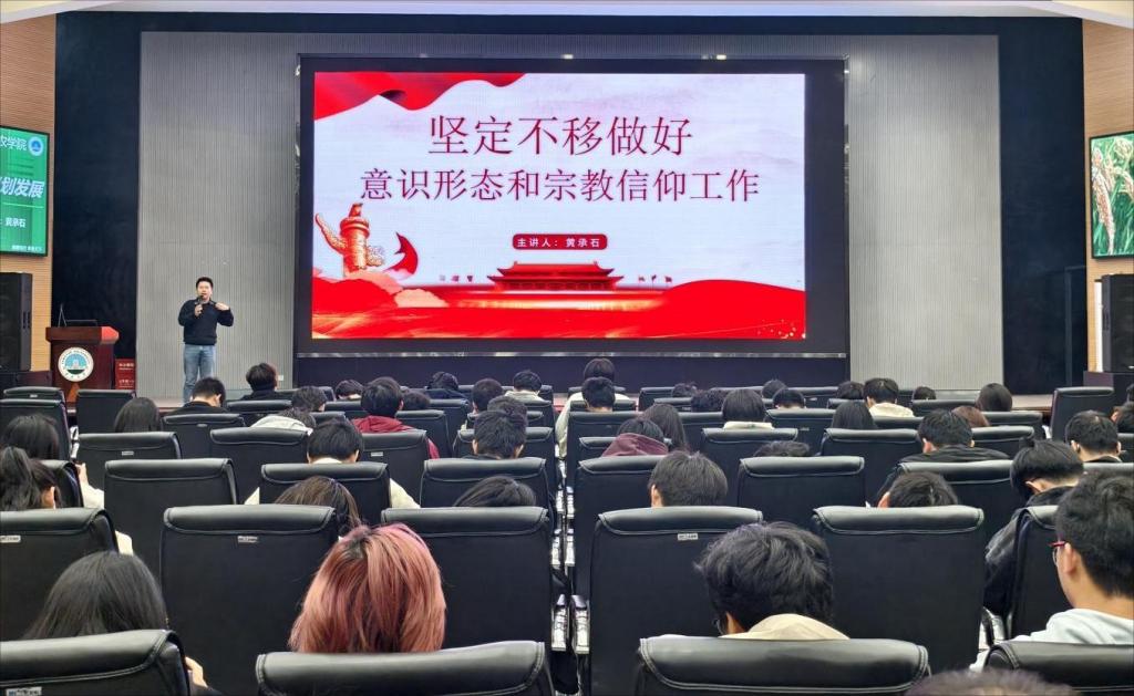 (通讯员 吴泓萱 张源康/文 胡雪晴 向建华/摄)为切实强化学子意识形态认知,提升安全防范综合能力,引导青年学子树立正确宗教观与国家安全观,11 月 11 日,英国正版365在农科大楼 1058 报告厅面向 2025 级全体新生举办意识形态暨安全教育专题讲座。本次讲座由学工办主任黄承石主讲,为新生们带来了一堂兼具理论深度与实践指导意义的思想安全必修课。