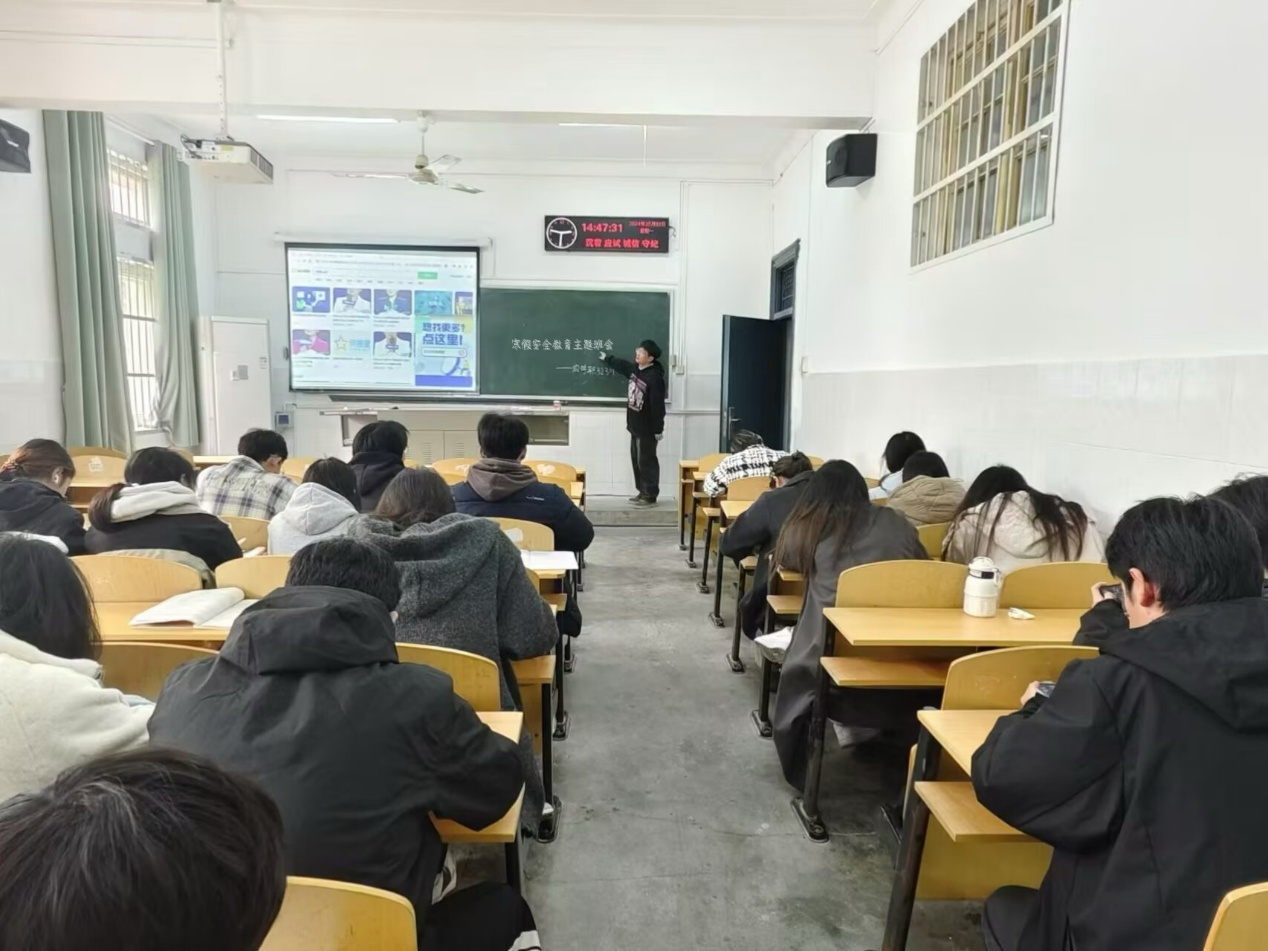 在各班班会上,在消防安全方面,重点强调了宿舍用电规范,严禁使用违规电器,离校前务必切断电源;交通安全方面,提醒同学们遵守交通法规,选择正规交通工具,不乘坐无牌无证车辆;人身财产方面,强调了离校前妥善保管贵重物品、往返途中及外出游玩时保持警惕、防范盗窃诈骗;网络使用方面,引导同学们文明上网,警惕网络陷阱,不传播不实信息,保护个人隐私。此外,针对冬季特点,班会还普及了流感等传染病的预防知识和食品安全常识。