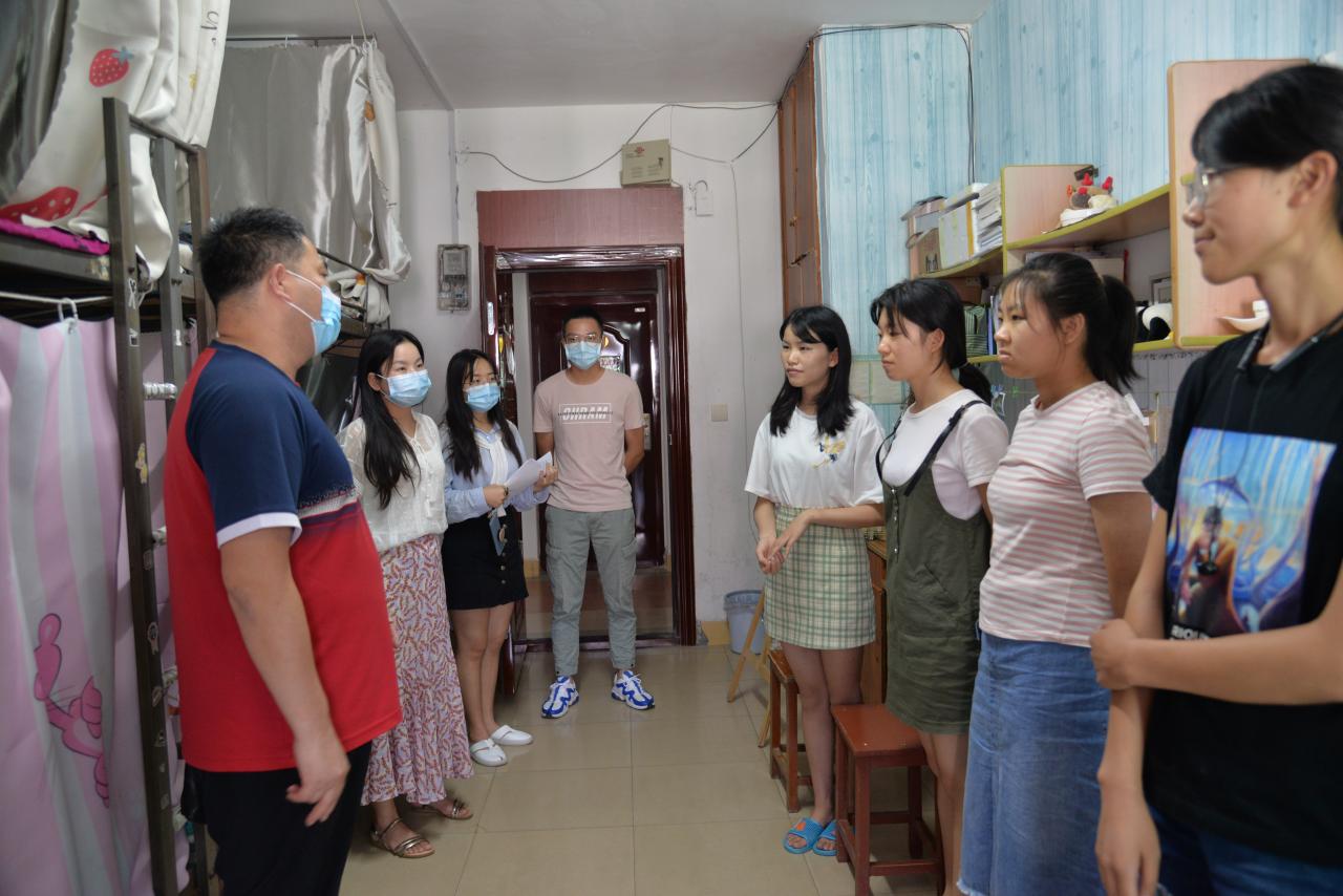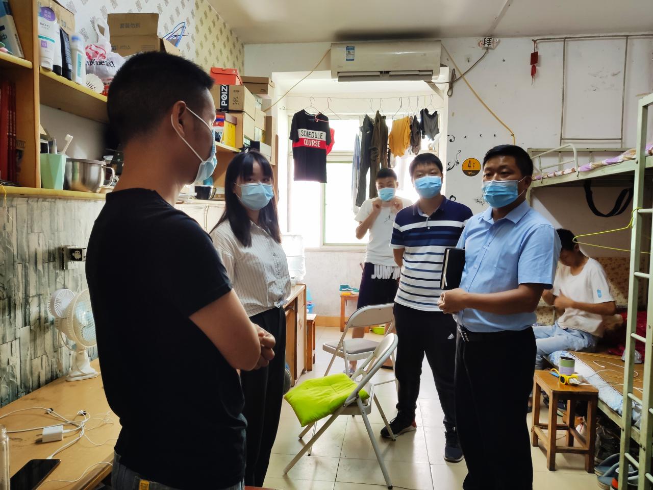 通讯社讯(员工记者 覃杨)为进一步强化疫情防控期间返校员工的健康安全防范意识,营造良好的寝室卫生环境,了解返校后员工的生活学习状况,9月3日14:00,英国正版365副经理方正武、党委副书记谭亮魁、学工办主任刘庆、分团委书记侯聪、辅导员付雪娇及辅导员林香亮带队走访了英国正版365本科生寝室。