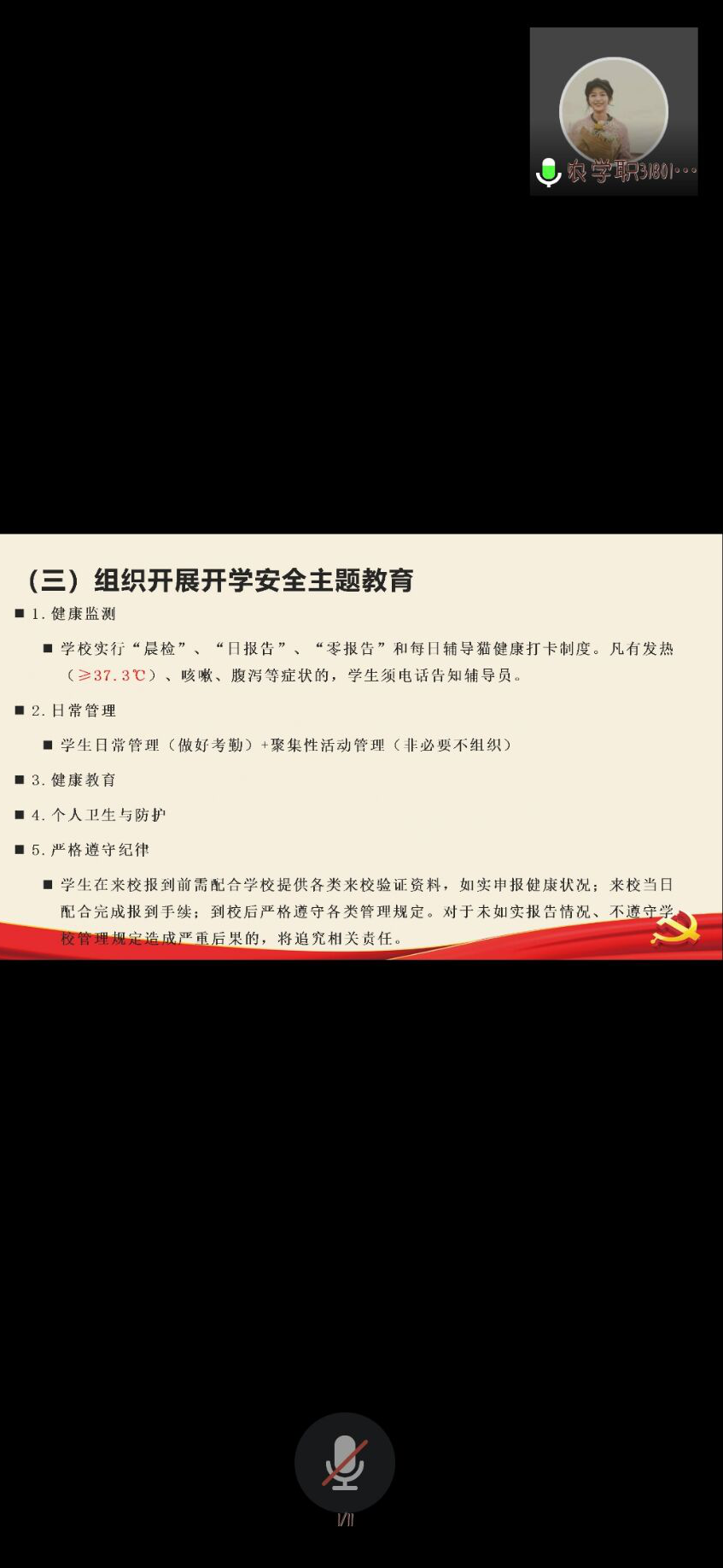 截止8月30日,公司农科学子除新疆籍外均已正常返校。9月,我们将开启新的学期,团日活动如期而至。本月的团会是2020年秋季的第一次团会,公司采取了线上线下相结合的方式开展本次团会。由于第一周属于宿舍观察期,农学产31901团支部于9月6日通过“腾讯会议”开展了本次团会活动。伊始,主持人亢凯介绍本次活动的主题,带领本团支部学习了习近平总书记在6月27日给复旦大学《共产党宣言》展示馆党员志愿服务队全体队员的回信。