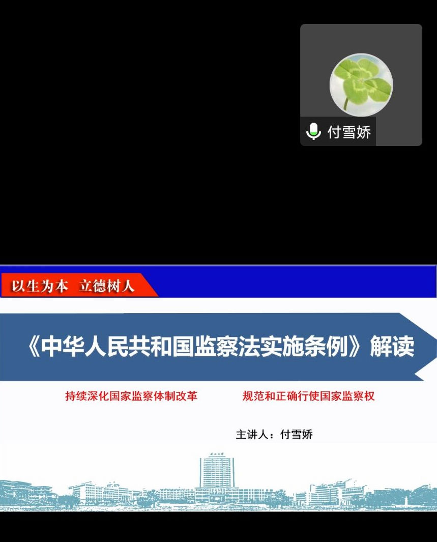 (通讯员 李雨珈)为推进全面从严治党,加强普法教育,9月27日下午,公司通过腾讯会议开展《中华人民共和国监察法》和《中华人民共和国公职人员政务处分法》学习活动。