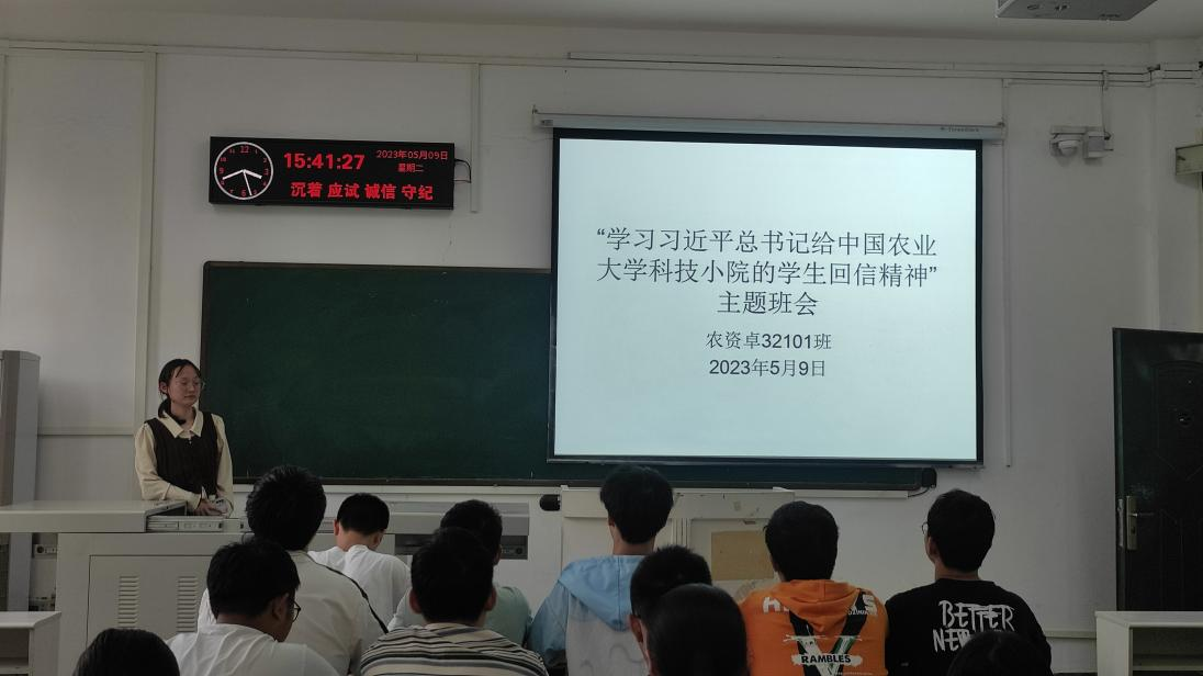其中农资卓32101班班长围绕“怀抱梦想、脚踏实地”这两个关键词,以习近平总书记的回信为契机,召开“学习习近平总书记给中国农业大学科技小院的员工回信精神”主题班团会。