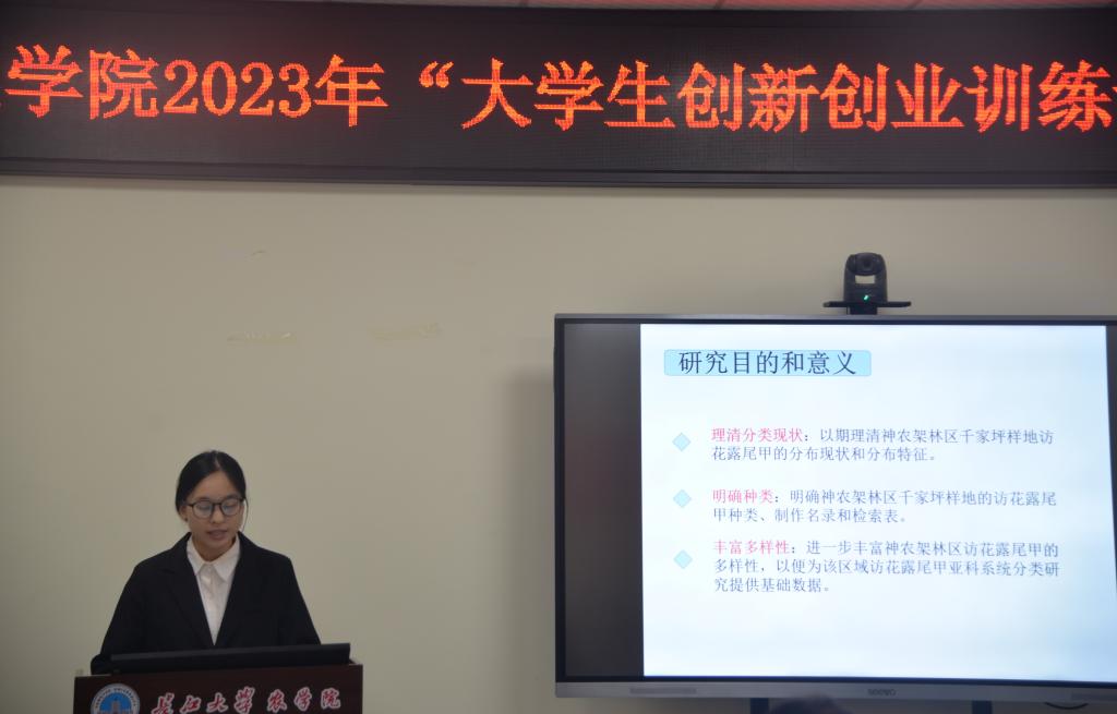 在答辩过程中,植保卓32201班的谭舒予同学的表现十分突出,在项目负责人陈傲的带领下,他们团队以神农架千家坪样地对访花露尾甲的分类为老员工创新创业项目进行了答辩。评委老师对她的答辩表达了一致的赞扬,并鼓励她在今后的学习中要围绕这个项目而努力,同时也倡导在场同学积极参与到科研工作中去。答辩过程中答辩者严谨的思路,流利的应答,彰显出创新创业的独特魅力;老师们结合经验,联系实际,给予鼓励的同时也提出宝贵建议,整场答辩过程精彩纷呈。
