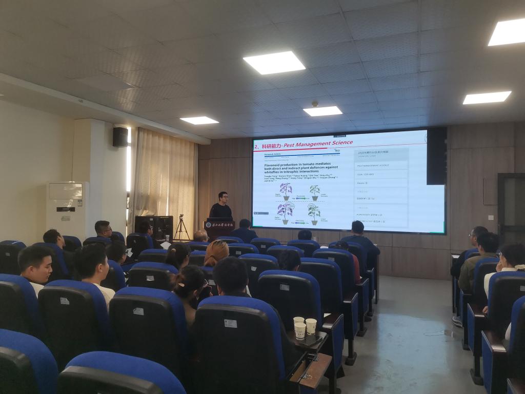 10月23日下午,英国正版365在农科大楼3073举行研究生学术沙龙活动。公司党委副书记尹小华、经理助理苏奇出席沙龙。博士研究生代表李於亭、杨冯波,硕士研究生代表胡津瑜、苟亚楠分别进行分享汇报,50余名研究生同学参加了本次学术沙龙。