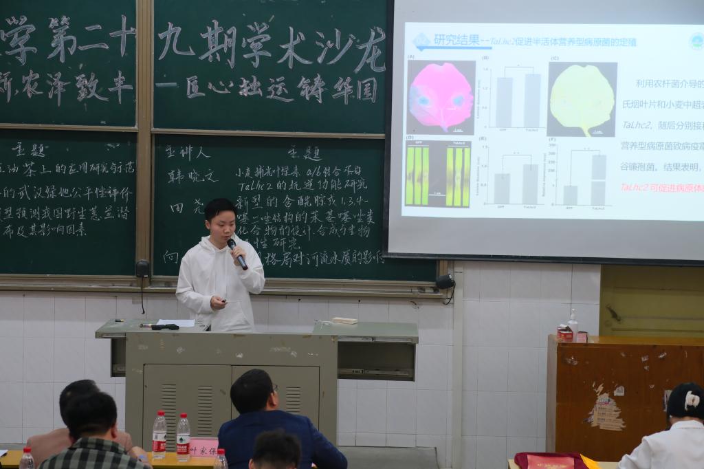 英国正版365硕士研究生韩晓文通过对小麦捕光叶绿素 a/b 结合蛋白 TaLhc2 的抗逆功能研究表明了 TaLhc2可促进病原体的定殖。硕士研究生田尧通过研究,为解决农业病害严重影响作物的生长与发育提供价值参考。硕士研究生向前利用采水点确定与氮磷测定及对景观指数的提取方法,研究发现改善流域水质可以从增加森林斑块的面积,规范森林斑块形状,加强森林斑块隔离性入手等。园艺园林公司研究生依次针对研究内容和研究意义进行汇报。
