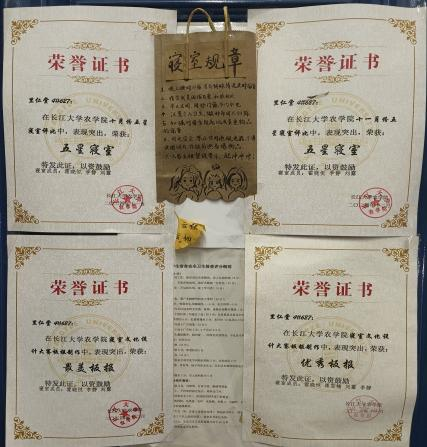 公共区域的“共享角”是智慧的结晶:急救包、针线盒、备用文具一应俱全,还有共享的小音箱、美甲套装,承载着无数欢乐时光。窗台的多肉盆栽在精心照料下蓬勃生长,为寝室增添一抹生机盎然的绿意。这份对生活品质的追求,让627连续三个学期蝉联“优秀寝室”的桂冠。