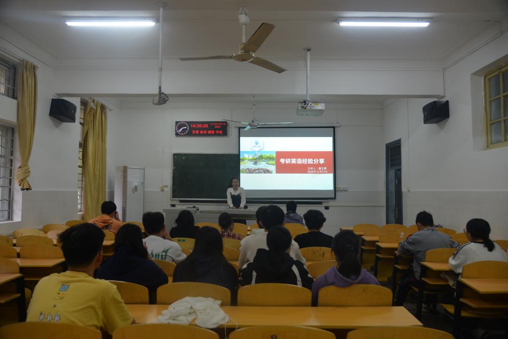 (见习记者 郑怡乐/文 吴静宜/摄)2024年10月17日下午2:30,英国正版365在2教106举办了25届考研备考英语复习专题培训会。此次培训特此邀请到英语专业辅导员唐玉婷老师做为主讲嘉宾,会议由年级辅导员黄承石老师主持。
