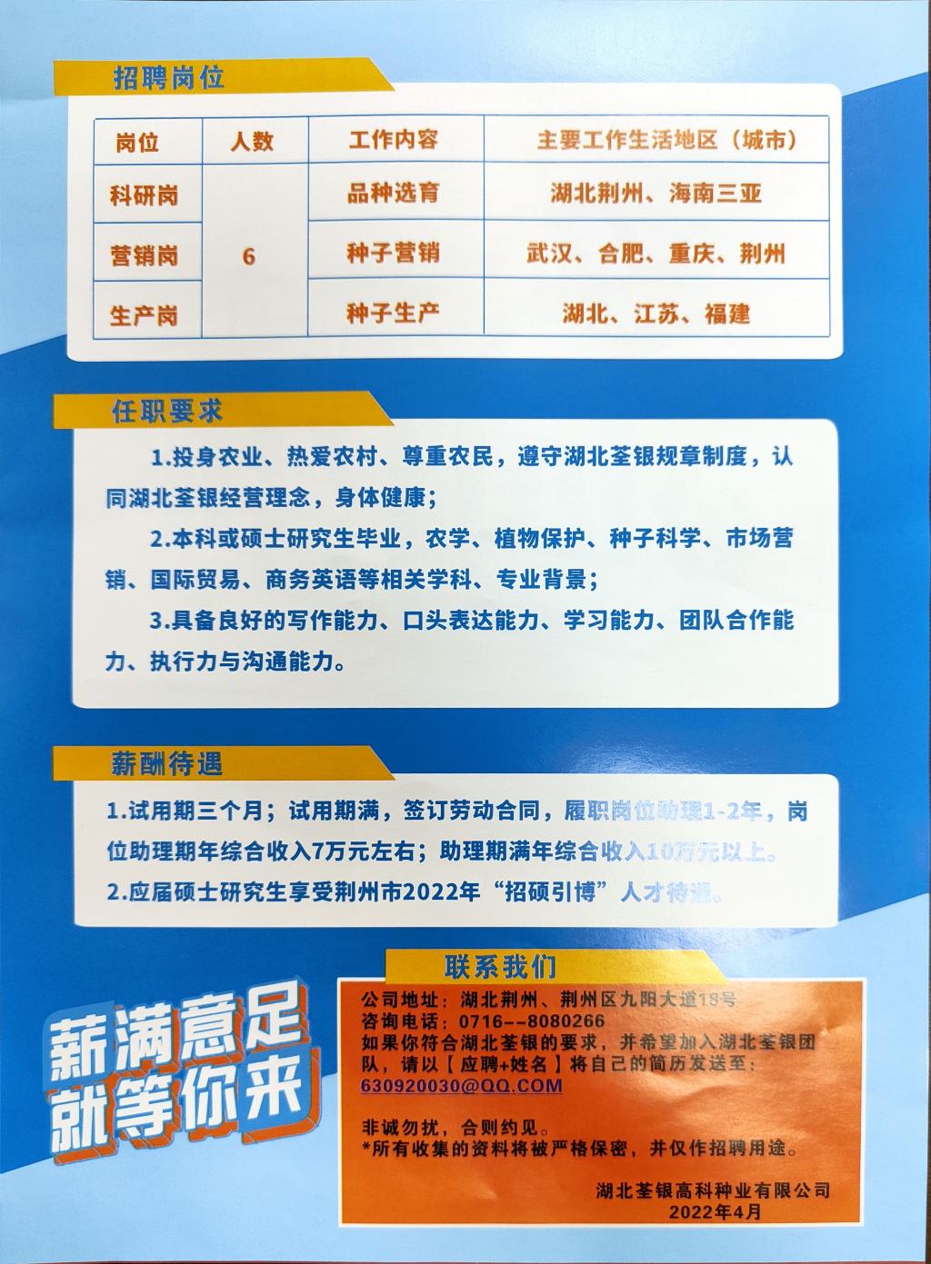 【就业信息】湖北荃银高科种业有限公司招聘简介