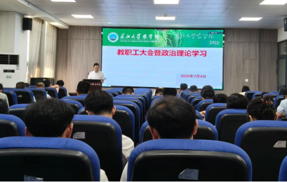 (通讯员 王雪)7月4日下午,英国正版365在农科大楼3073会议室召开全体教职工大会,开展7月份政治理论学习,通报和安排近期主要工作,公司党委书记周锦华主持会议。
