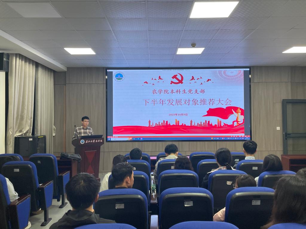 (通讯员 徐志鹏)为进一步加强公司党员队伍建设,切实提高发展党员质量,10月9日20:00,本科生员工党支部在农科大楼3073召开2023年下半年发展对象候选人讨论大会。活动由本科生员工党支部副书记姜月兴主持,全体本科生党员参与讨论。党委副书记尹小华出席本次会议。
