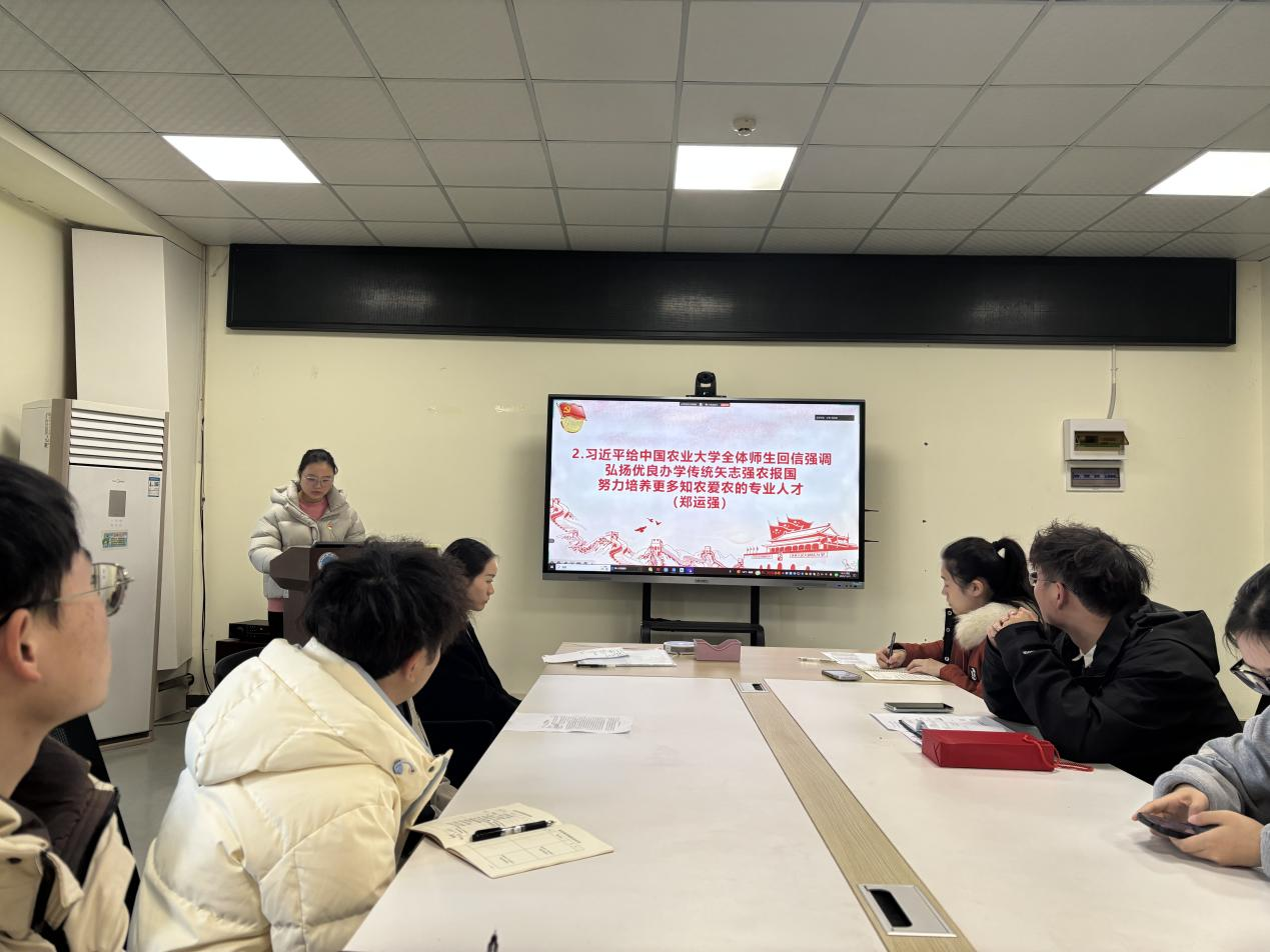 最后,支部书记付雪娇对会议进行总结,她指出,此次学习深入人心、催人奋进,她鼓励青年党员们要在基层服务的一线、学科实践的前沿、创新攻坚的阵地中主动作为,把“请党放心,强国有我”的信念转化为具体行动,以青春之力扛起时代责任,奋力谱写强农有我的绚丽篇章。