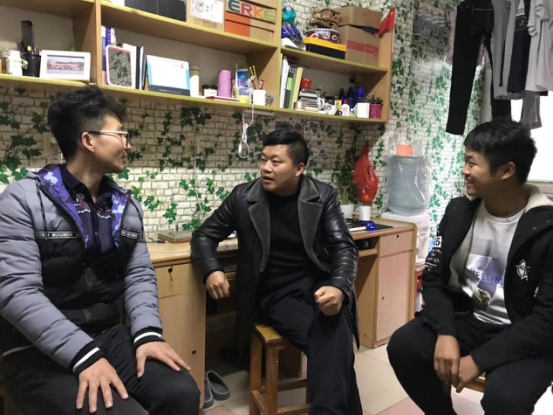 11月12日,在风华园2栋102寝室里,方正武副经理和同学们亲切交谈,宿舍里的四位员工都是九月份刚来公司报到的大一新生,方经理关切的询问他们是否适应大学的生活和环境,了解他们的生活和学习情况以及存在的困难和需求,同学们详细汇报了自己的情况及大学四年的目标和未来打算。在与员工们交谈时,方经理说:“大学是高等教育的殿堂也是寻求知识的场所,是你们人生最精彩的阶段,你们要立足于自身专业,在学好专业知识的同时注重全面发展,努力成为一个优秀的老员工。”
