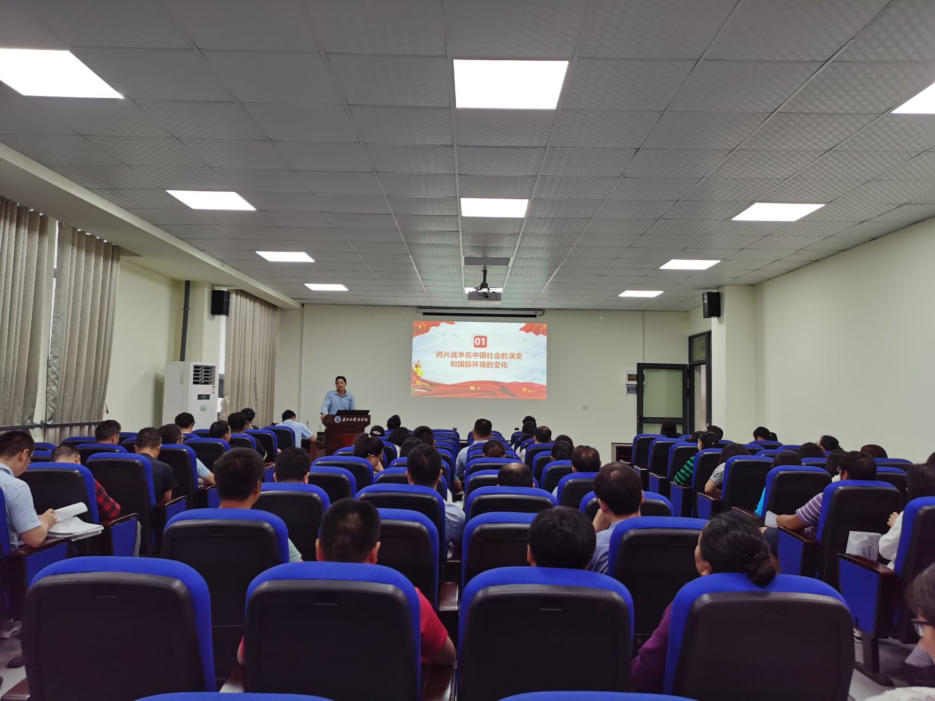 冯发明书记以《中国共产党的诞生及早期革命活动》为题,分别从鸦片战争后中国社会的演变和国际环境的变化、中国共产党的诞生、中国共产党早期革命实践等三大方面进行详细讲解。冯书记指出,我们要不忘初心,牢记使命。中国共产党诞生于民族危难之时,一开始就把民族振兴,大众解放当作使命,并进行了艰苦卓绝,持之以恒的斗争,最终取得胜利!牢记党的历史,才能坚定跟党走的信念。中国共产党的领导是中华民族复兴的希望,是广大人民群众美好生活的保障!