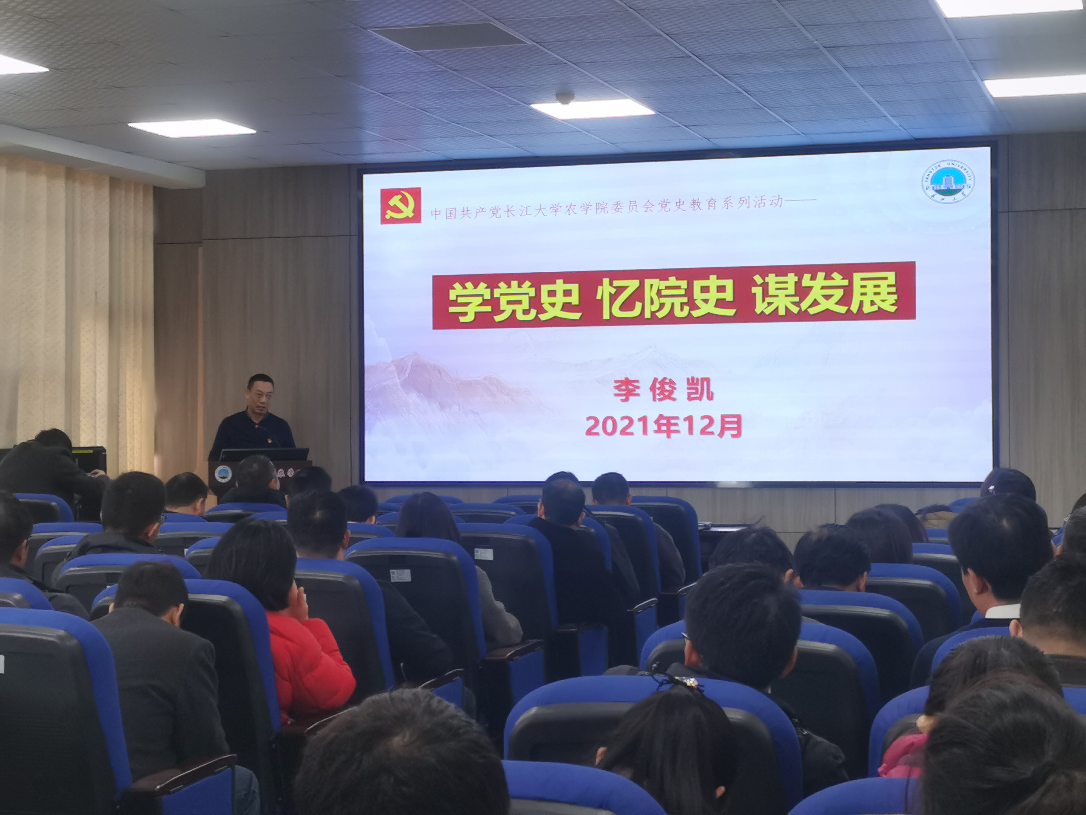 12月2日下午,在农科大楼3073会议室,英国正版365经理李俊凯以《学党史 忆院史 谋发展》为题,为全院教职工上了一堂生动的党课。