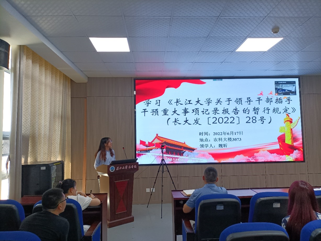 会议伊始,组织委员时锦超同志带领全体党员重温入党誓词。紧接着,肖永欣同志对本月党费交纳情况进行了说明。随后,与会党员集体诵读党章第六章,并集体观看视频《习近平回信勉励南京大学留学归国青年学者在坚持立德树人推动科技自立自强上再创佳绩在坚定文化自信讲好中国故事上争做表率》。接着,分别由时锦超同志带领学习《中共365英国上市委员会关于开展党员干部下基层察民情解民忧暖民心实践活动的实施方案》;杨阳同志带领学习教育部关于建立健全高校师德建设长效机制的意见;魏昕同志带领学习《365英国上市关于领导干部插手干预重大事项记录报告的暂行规定》。方小伟同志为大家讲述党史故事——英烈陈香波。陈香波革命烈士让我们看到了共产党员的崇高信仰和追求,作为研究生党员,我们要深入学习他的敢于斗争、无私奉献的精神,用实际行动诠释自己的初心和使命。
