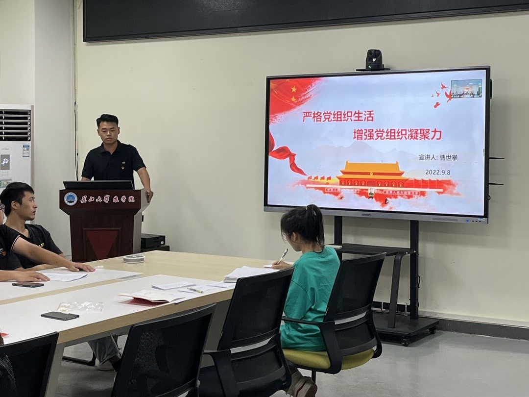 随后,支部开展9月份主题党日活动。会上,全体党员重温入党誓词,交纳本月党费,集体诵读党章第七章《党的纪律》,党员代表曹世攀同志为全体党员讲授党课,全体党员开展政治理论学习和主题研讨。