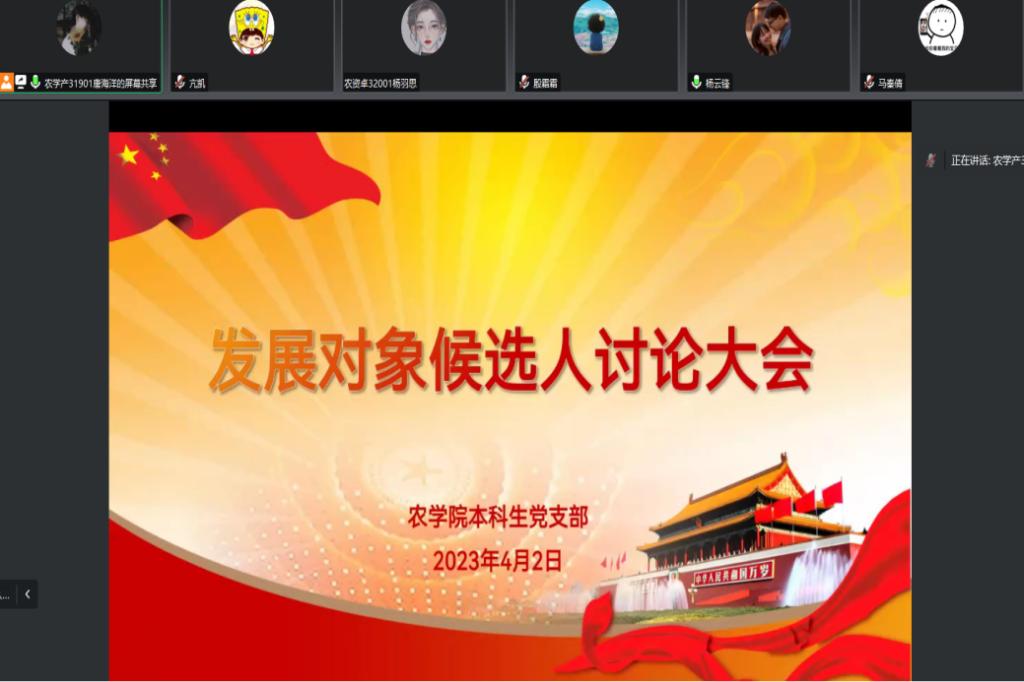 (通讯员 亢凯)为进一步加强公司党员队伍建设,切实提高发展党员质量,4月2日下午3:00,公司本科生员工党支部在腾讯会议召开2023年上半年发展对象候选人讨论大会。活动由本科生员工党支部副书记唐海洋同志主持,全体本科生党员参与讨论。英国正版365本科生员工党支部书记杨云锋同志出席本次会议。